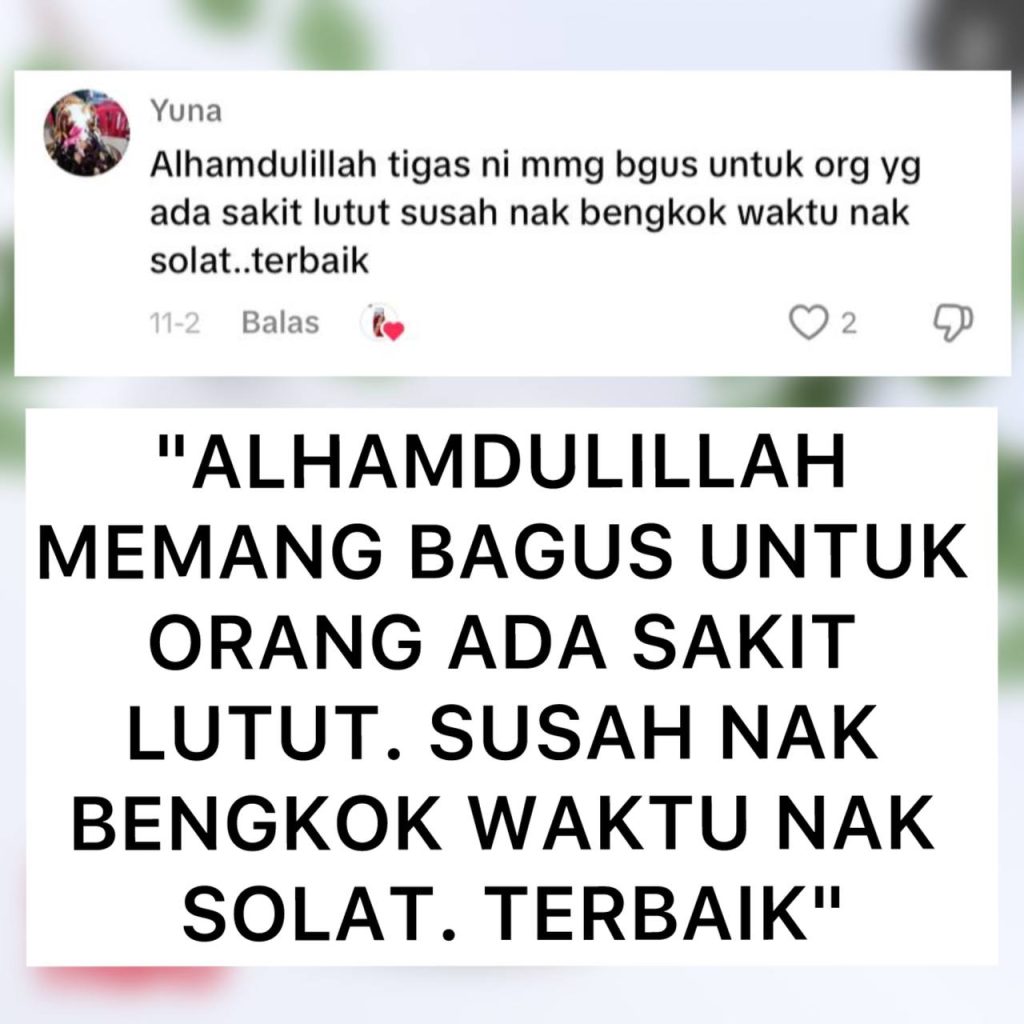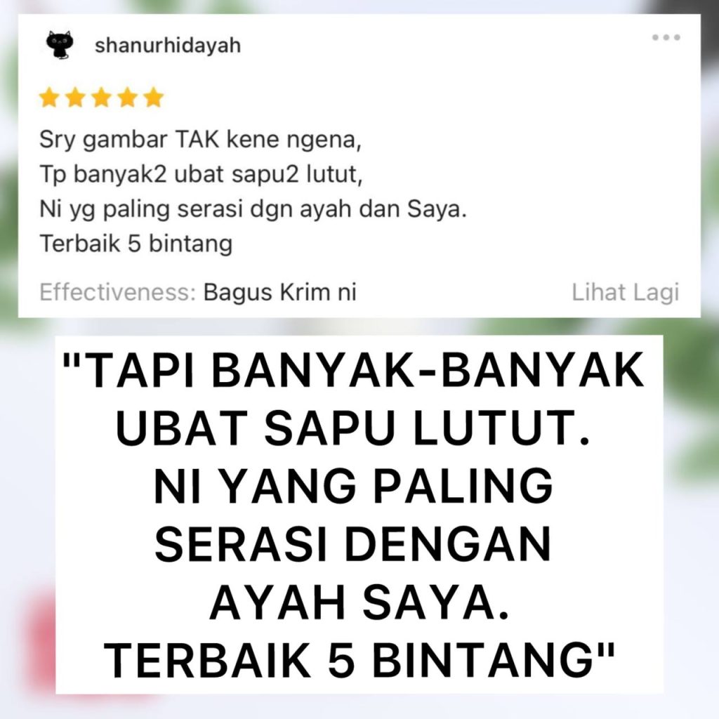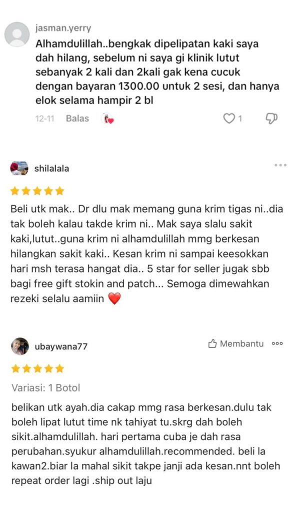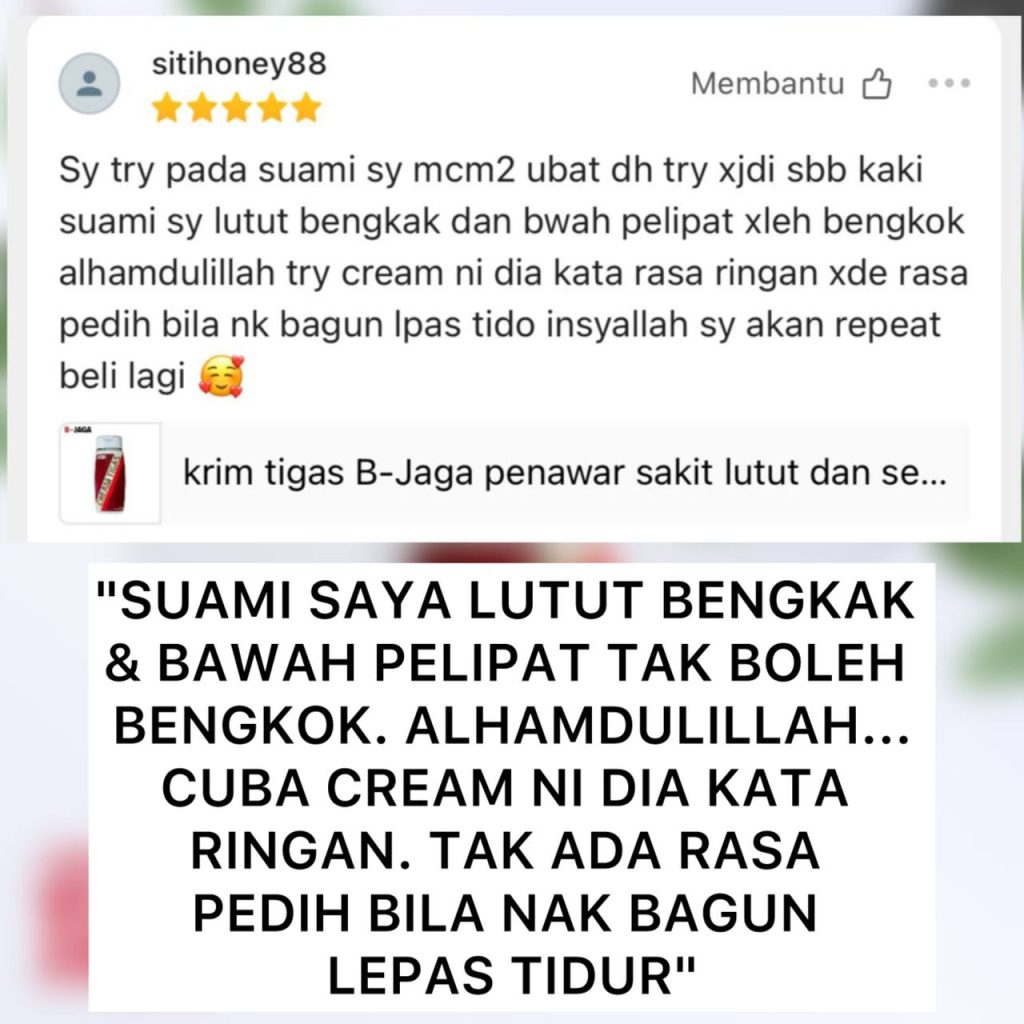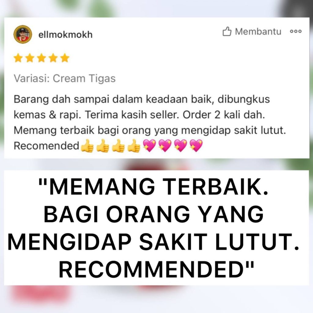 Kami pun sama macam anda. Kalau nak beli sesuatu. Mesti nak pasti betul-betul puashati. Nak cepat sembuh. Dah tak tahan nak tanggung derita sakit lutut, bengkak lutut dan kaki ‘Air Bengkak’