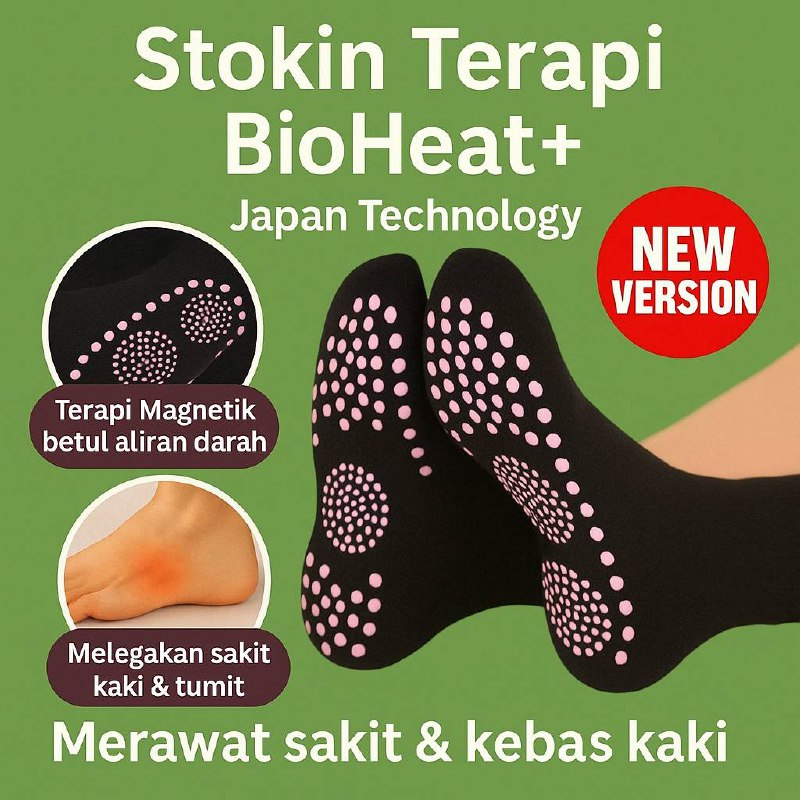 Ya, pengguna yang ada kencing manis (diabetes) dan darah tinggi BOLEH guna Stokin Terapi BioHeat+, dengan syarat guna dengan cara yang betul dan pantau keserasian awal. ⸻ Kenapa Stokin Terapi BioHeat+ Sesuai untuk Diabetes & Darah Tinggi: 1. Bantu peredaran darah • Pesakit diabetes & darah tinggi selalu alami peredaran darah perlahan, terutama di kaki. • Stokin ini bantu rangsang aliran darah dan kurangkan kebas, sejuk & semut-semut di hujung kaki. 2. Guna tourmaline semulajadi • Tak guna ubat, tiada bahan kimia atau alatan elektrik. • Hanya haba semula jadi dari badan sendiri yang diaktifkan oleh tourmaline. 3. Ramai warga emas guna dengan selamat • Termasuk pengguna yang dah lama ada masalah saraf, darah tinggi dan kaki bengkak.